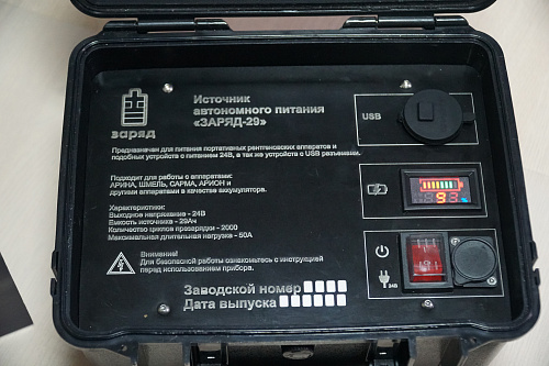 Заряд 29 - источник автономного питания для промышленных устройств требующих питания 24В. Источник удобно применить в полевых условиях, ударопрочный кейс которого выполнен и жесткого пластика и имеет защиту от пыли и влаги в закрытом состоянии. Работа с устройством возможна при закрытом кейсе что обеспечивает защиту от попадания воды, брызг, дождя. Удобный защищенный разъем находится снаружи корпуса.