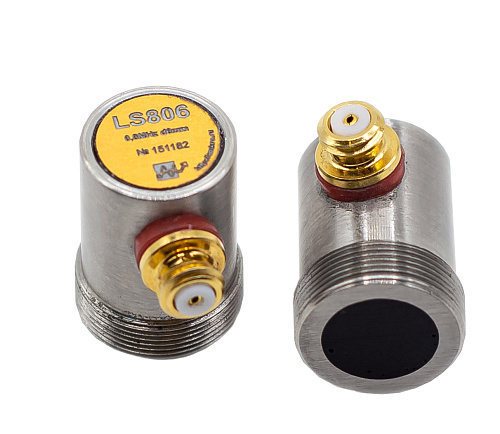 LS806 - ультразвуковой контактный низкочастотный  раздельный преобразователь  для теневого способа контроля. Выпускается в двух модификациях - со сменным силиконовым протектором либо с металлической защитной поверхностью.