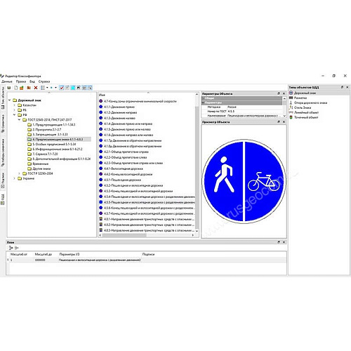 Для различных технических средств ОДД разработаны специальные объекты тематического классификатора. Пользователь может их редактировать и дополнять классификатор новыми элементами: как самими объектами организации движения, так и разнообразными подписями, и семантическими свойствами - через Редактор классификатора.